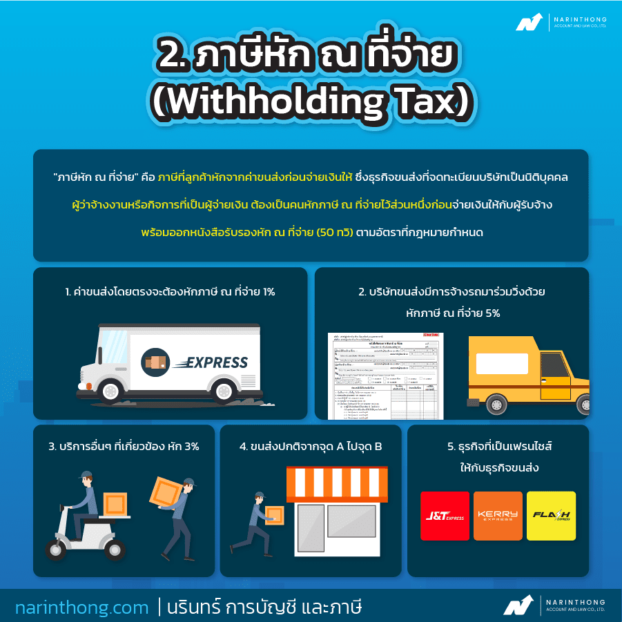 - ภาษีหัก ณ ที่จ่าย: ลูกค้ามักจะหักไว้ 1–3% ทุกครั้ง