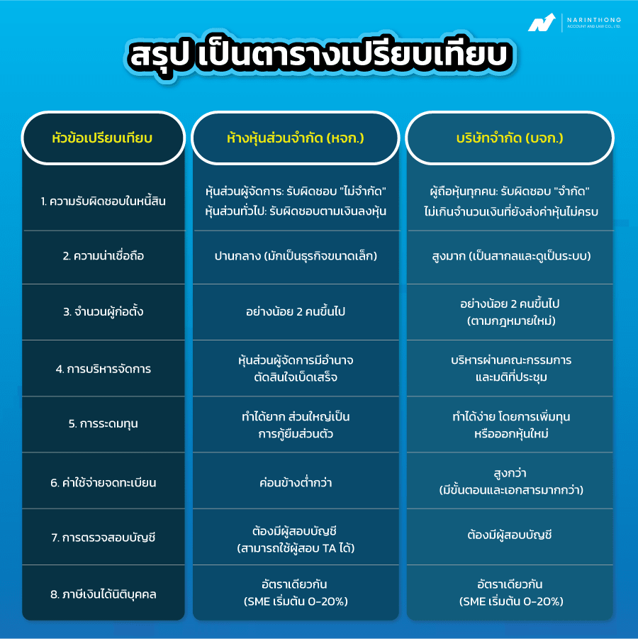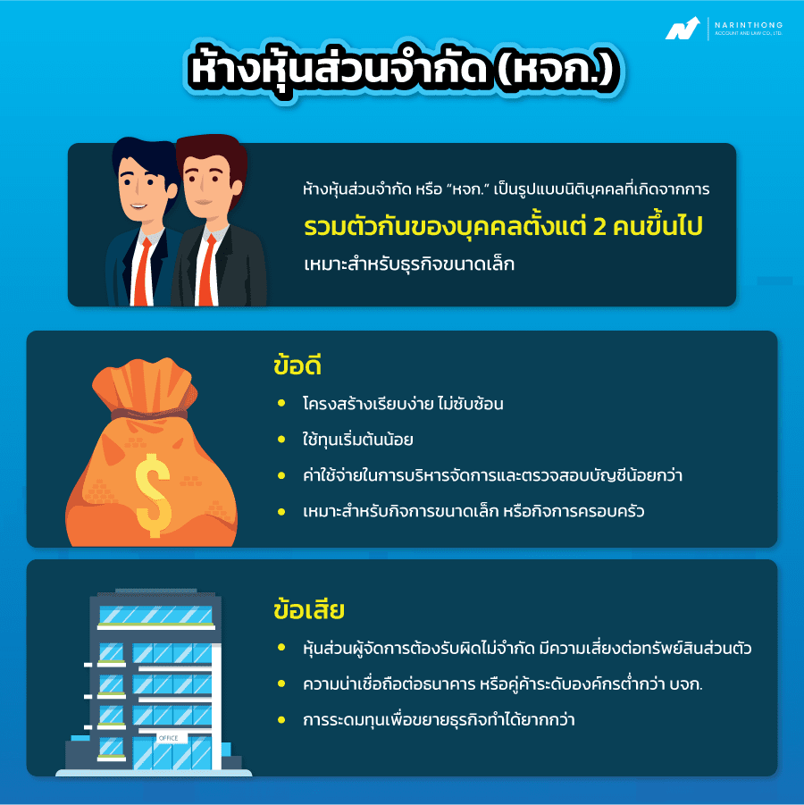การจะเริ่มต้นทำธุรกิจทั้งที แค่มีไอเดียอาจยังไม่พอ เพราะคำถามยอดฮิตที่เจ้าของมือใหม่ต้องเจอคือ 'จะจด หจก. หรือ บริษัทดี?' แม้ทั้งคู่จะเป็นนิติบุคคลเหมือนกัน แต่ความรับผิดชอบเรื่อง 'หนี้สิน' และ 'ความน่าเชื่อถือ' นั้นต่างกัน บทความนี้[/color]นรินทร์ทอง[/size][/url] จะช่วยคุณเจาะลึกว่า ข้อดี ข้อ เสีย ระหว่าง ห จก กับ บริษัท มีอะไรบ้าง